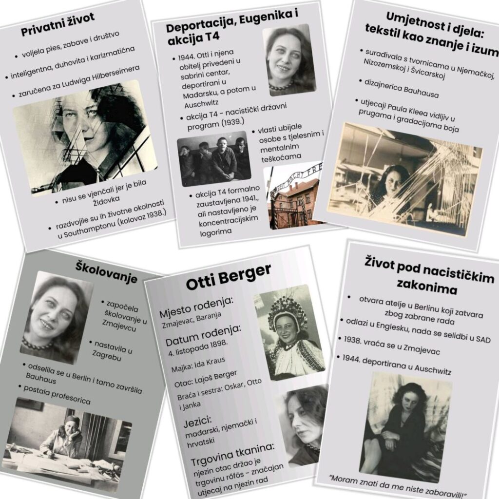 Integrirana radionica o Otti Berger – povodom Dana sjećanja na žrtve Holokausta u školi je održana integrirana radionica o Otti Berger pod nazivom „Moram znati da me niste zaboravili!“, posvećena životu i djelu ove istaknute baranjske umjetnice i dizajnerice Bauhausa. U sklopu nastave Povijesti (učitelj Željko Predojević) učenici su, na temelju posebno pripremljenih radnih materijala, proučavali život Otti Berger u kontekstu Holokausta, nacističkih zakona, progona Židova i sustavne diskriminacije. Posebna pozornost posvećena je njezinoj nagluhosti i položaju osoba s invaliditetom u nacističkom sustavu, kao i povezivanju rasne ideologije i eugenike. Učenici su analizirali njezin životni put – od Zmajevca do Bauhausa i deportacije u Auschwitz – razvijajući razumijevanje povijesnih procesa kroz osobnu sudbinu pojedinca. Na satu Hrvatskoga jezika (učiteljica Silvija Švelinger) učenici su izrađivali blackout poeziju prema životopisu Otti Berger, kreativno izdvajajući ključne poruke iz njezine životne priče. U sklopu Informatike (učitelj Goran Podunavac) izrađivani su digitalni posteri u Canvi, kojima su učenici vizualno predstavili njezin život, rad i povijesni kontekst. Na Njemačkom jeziku (učiteljica Edina Šipoš) obrađivan je vokabular vezan uz umjetnost, dizajn i Bauhaus, čime su učenici povezivali jezične sadržaje s temom radionice. Radionica je učenicima omogućila interdisciplinarni pristup temi Holokausta, potaknula razvoj empatije, kritičkog mišljenja i svijesti o važnosti očuvanja povijesnog sjećanja, ali i naglasila vrijednost lokalne baštine i iznimne životne priče Otti Berger.