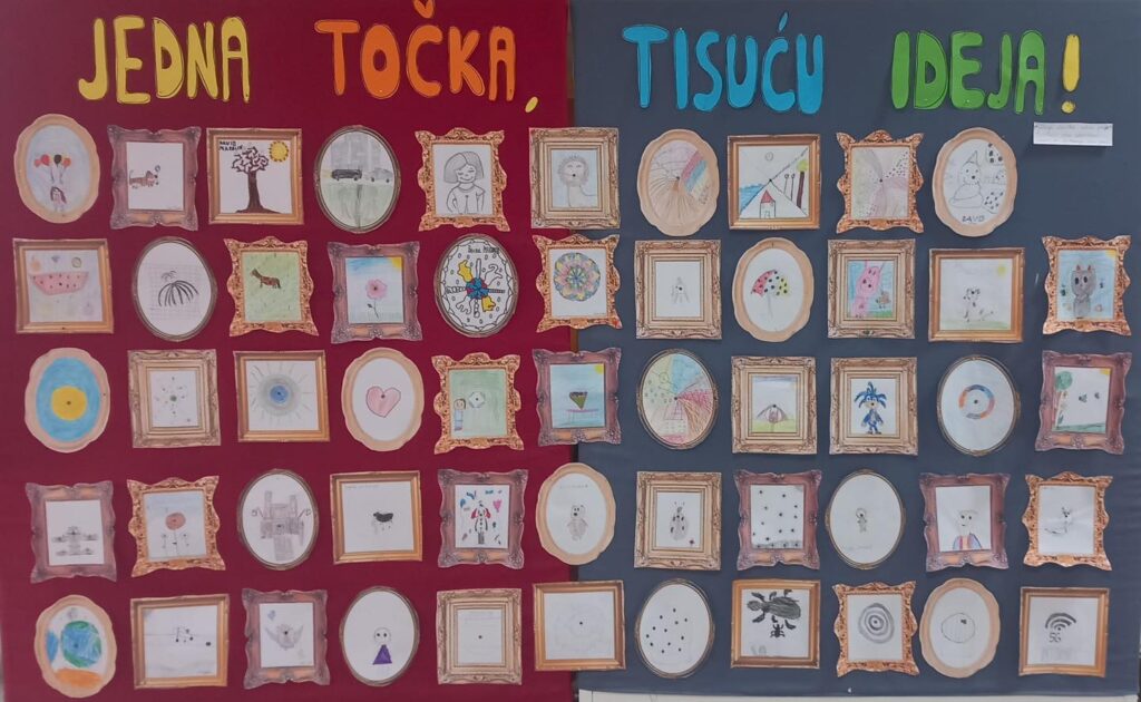 Povodom Svjetskog dana kreativnosti i inovacija (21. travnja), naši su učenici uz podršku rehabilitatorice Dunje Tomić i pedagoginje Danijele Mađarac pokazali koliko mašta može biti snažna – od jedne točke nastali su jedinstveni crteži puni kreativnih ideja.