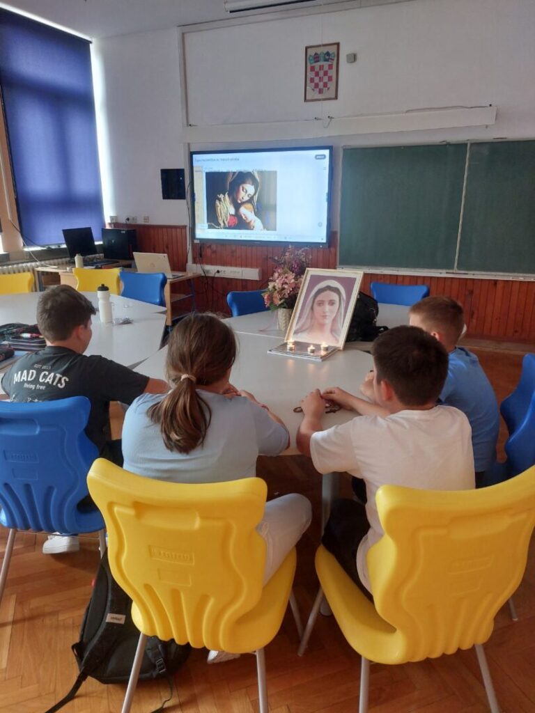 Učenici naše škole pridružili su se i ove godine hvalevrijednoj svjetskoj molitvenoj inicijativi. Okupili su se pred Gospinim likom, molili za mir u svijetu i zapjevali Mariji. Ponijeli su svoje krunice kao znak zajedništva i poticaj na daljnju molitvu u obitelji. Uživali su u saznanju da djeca diljem svijeta mole za njih.