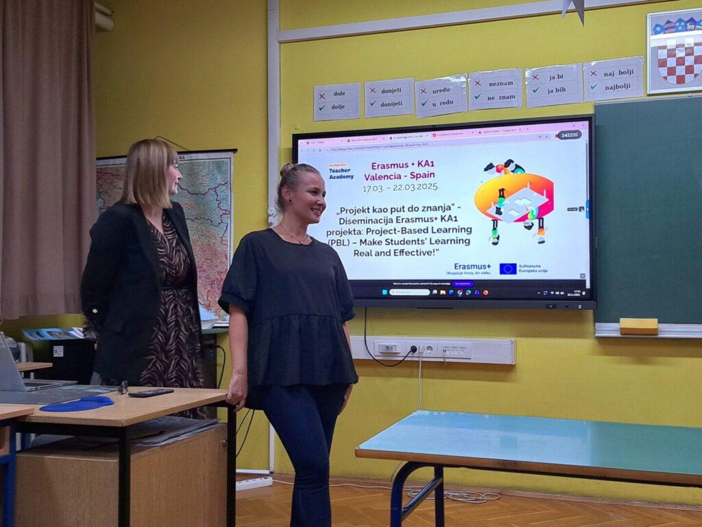 Predavanje “Projekt kao put do znanja” održale su Ivana Vrbek Mesić (OŠ Popovac) i Anela Pejić (OŠ Popovac / OŠ Kneževi Vinogradi) u sklopu diseminacije Erasmus+ projekta What’s STRONG With You, sufinanciranog od strane Europske unije. Predstavile su dva projekta, nastala kao rezultat učenja na tečaju kojeg su pohađale u Valenciji, Španjolska (“Project-based Learning (PBL) – Make Students’ Learning Real and Effective!”):