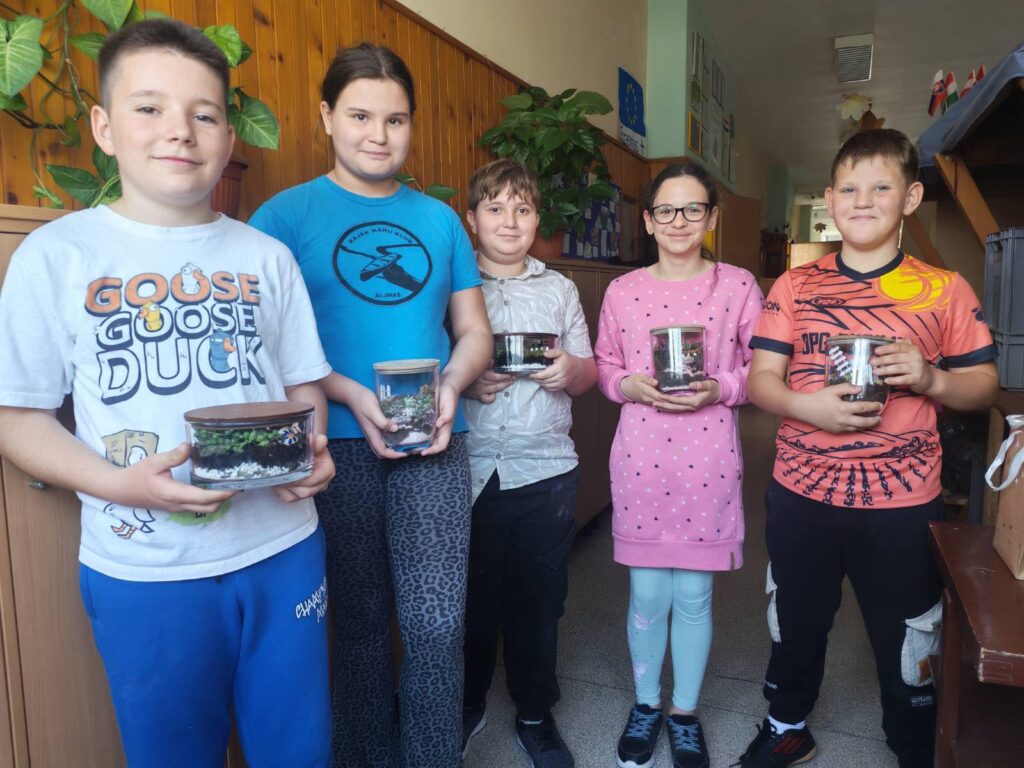 Koristili su sukulente, kamenje, zemlju, grančice te razne ukrase poput malih košarica i ograda. Aktivnost su s oduševljenjem prihvatili te s radošću i kreativnošću izrađivali svoje jedinstvene vrtove. Na kraju su bili iznimno ponosni na svoje uratke!